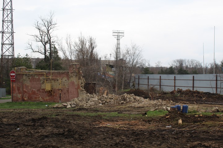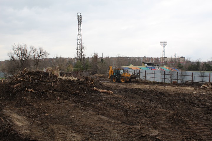 Началось все с демонтажа стены, которая находится рядом со стадионом на ул. Октябрьской. Далее строители будут осуществлять планировку территории под застройку и ее ограждение.