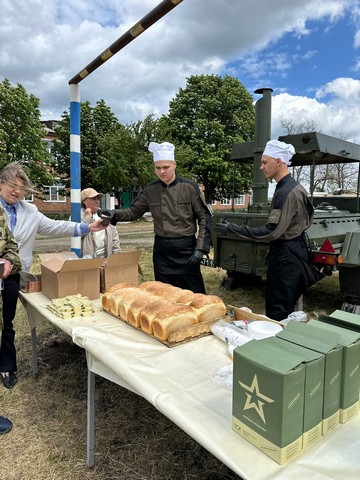 На территории школы работала полевая кухня. Каждый желающий мог попробовать вкусную кашу, свежий хлеб, который военные испекли сами. Прошла также выставка военного оружия.