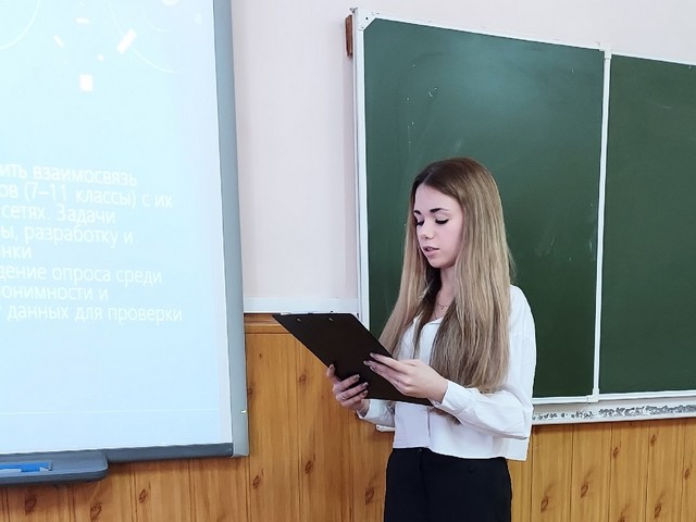 Виктория Михайлова (11 класс) достойно выступила в секции «Психология», представив глубокий анализ активности школьников в социальных медиа.