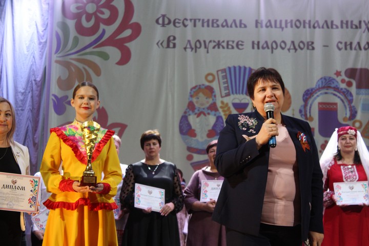 Обладателем «Гран-при» стало Пролетарское сельское поселение и получило заслуженную награду — Кубок победителя районного творческого фестиваля — из рук заместителя Главы Администрации района Л.С. Матвиенко. Диплом победителя вручила начальник отдела культуры и искусства Л.Х. Захарова. Лада Святославовна поздравила всех с замечательным праздником — Днем народного единства и пожелала всем присутствующим мира, добра и удачи.